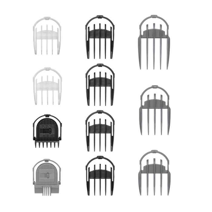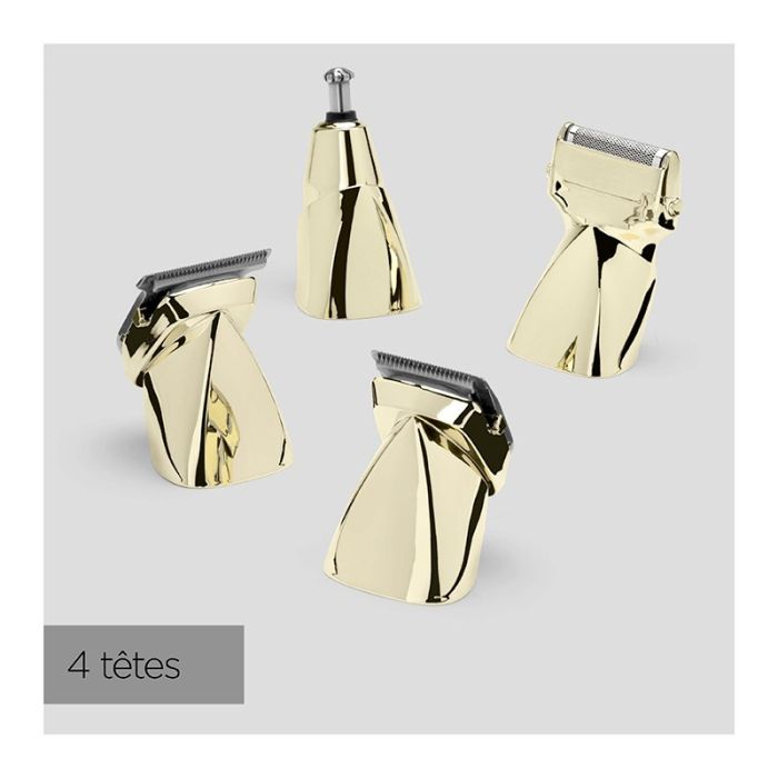 | Aanvullende kenmerken | UITZONDERLIJKE PRESTATIESMessen van Japans staal- Ongeëvenaarde precisie en soepelheid bij het snijden zonder inspanning of weerstand- Duurzame prestaties: slijtvast messenLithium-ion batterij- Versterkte autonomie: 300 min / Snelladen: 3 uur- Quick charge functie: 20 min opladen voor ongeveer 40 min gebruik- 100% waterdichtVOLLEDIGE PROFESSIONELE SET4 verwisselbare magnetische koppen- Haartrimmer 38 mm: precisie 0,2 mm 3 snijgeleiders (9, 12, 16 mm)- Baard- en lichaamstrimmer 30 mm 1 verstelbare baardgeleider (6 standen: van 1 tot 3,5 mm) 4 baardgeleiders 5, 6, 7, 8 mm 2 lichaamsgeleiders van 3 en 4 mm 1 wenkbrauwgeleider (2 standen: 3-5 mm)- Ultra-precisie scheermes 25 mm- Neus-/oortrimmer van roestvrij staal |