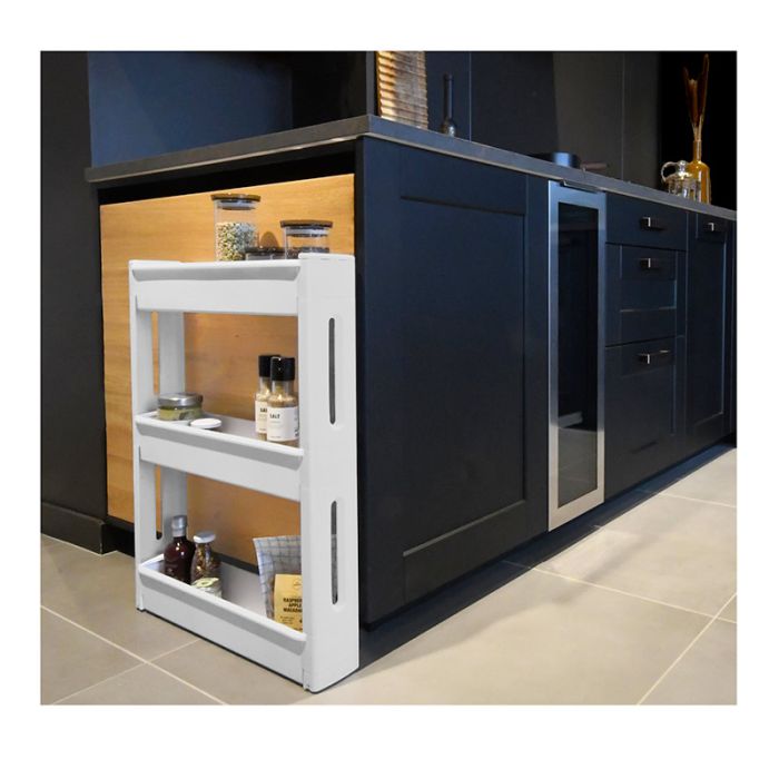 | Aanvullende kenmerken | Mobilo XS trolley met drie niveaus Mobil en licht, verplaatsbaar dankzij de 4 zwenkwieltjes - afmetingen geschikt om onder een werkblad te plaatsen: 55,2 x 12 x 70,5 cm - te monteren product dat geen gereedschap vereist |