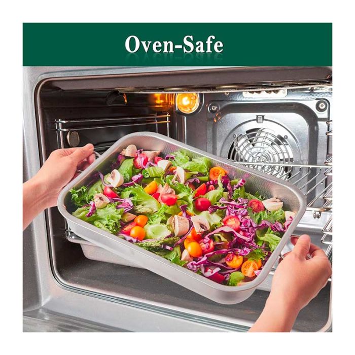 | Aanvullende kenmerken | RECHTE RVS BAKPLAAT 30cm met honingraat anti-aanbakbodem zonder chemische coating Gepatenteerd honingraatoppervlak voor zeer efficiënte bereiding dankzij het anti-aanbakeffect Gemakkelijk te reinigen in de vaatwasser Hygiënisch en veilig materiaal voor het bereiden en bewaren van voedsel Inklapbare handgrepen |