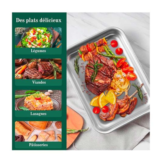Rated 5 van de 5 door pelagie uit Bonne qualité Super plat,bonne mesure pour des plats comme les lasagnes,réchauffer de la foccia,un bon gratin,trop bien,il est facile à nettoyer merci 😘