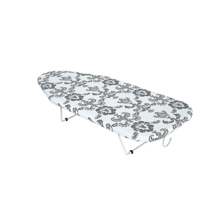 | Aanvullende kenmerken | StrijktafelAfmetingen van het blad 70x32cm - Dikte 2cmInklapbare poten. Totale hoogte met uitgeklapte poten 11cmOphanghaak voor opbergen100% katoenen hoes op 7mm schuim |