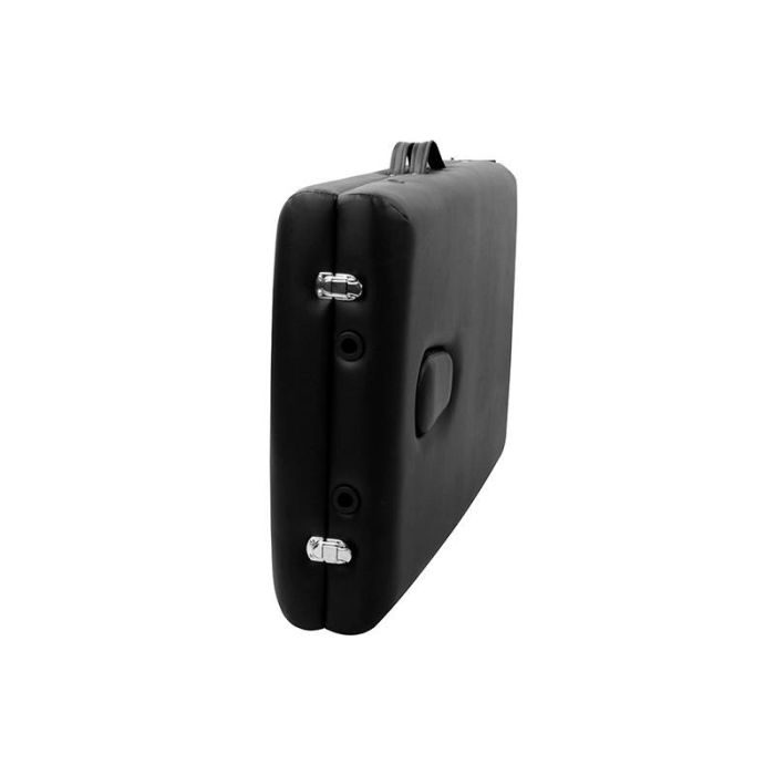 | Aanvullende kenmerken | OPVOUWBARE MASSAGETAFEL YOGHI 2 ZONES (TDM102 BLACK) Aanpasbaar Comfort: Eenvoudig en snel aan te passen systeem volgens uw behoeften, inclusief hoogteverstelling, en aanpassing van de benen, nek en armen. Volledige Ergonomie: Voorzien van een afneembare gezichtsuitsparing, een verstelbare en afneembare hoofdsteun voor perfecte hygiëne, en comfortabele armleuningen met verstelbare afstand. Versterkte Stabiliteit: Massief houten frame (beuk) met met plastic omhulde metalen kabels voor maximale stabiliteit en antislipvoetjes. Mobiel Gebruiksgemak: Vouwt snel op voor compacte opslag en gemakkelijk transport. Materialen en Onderhoud: Slijtvast PVC bekleding, eenvoudig schoon te maken met een doek of vochtige spons. Oppervlakte Afmetingen: Ligoppervlak van 185 x 60 cm, tot 215 x 80,5 cm met accessoires. Draagvermogen: Ondersteunt een gebruikersgewicht tot 125 kg en een totale werkbelasting van 225 kg (verdeeld). Verstelbare Hoogte: De tafel is verstelbaar van 62 tot 84,5 cm hoog om zich aan te passen aan de lengte van de behandelaar. Inclusief Accessoires: Wordt geleverd met een polyester draagtas en 2 hoeslakens. |