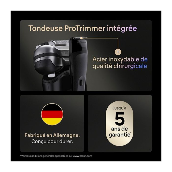 Rated 5 van de 5 door Marco31 uit Super fonctionnalités! Après avoir utilisé d'autres rasoirs pendant quelques années, je suis finalement passée à Braun. Il faut essayer quelque chose de différent pour voir si ça fonctionne. J'en suis ravie : la batterie a une excellente autonomie, il est facile à nettoyer et offre un rasage impeccable !