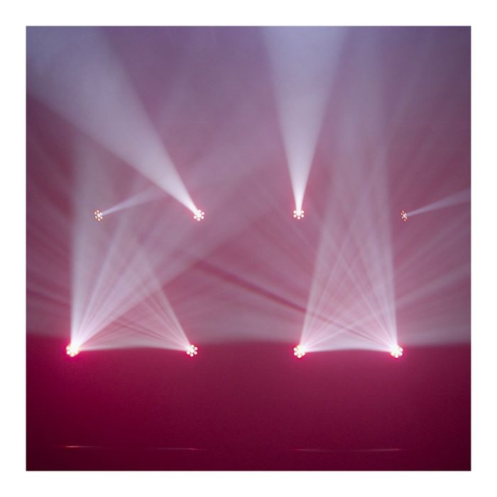 | Aanvullende kenmerken | 2-in-1 systeem dat Wash-effect en een spot combineert Voorzien van 6 krachtige 10W RGBW LED's. Beschikt over een wiel met 7 vaste Gobos, een wiel met 7 kleuren, een prisma met 3 facetten en een strobe-effect. |