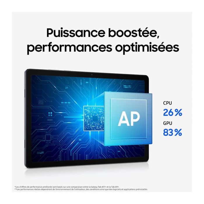 | Aanvullende kenmerken | Vind al je dagelijkse essentials terug op een tablet. Dat is de belofte van de nieuwe Samsung Galaxy Tab A11+. In combinatie met luidsprekers die Dolby Atmos ondersteunen, verandert het vloeiende scherm (verversingssnelheid van 90 Hz) elke film in een meeslepende ervaring.De opslag van 128 GB, uitbreidbaar tot 2 TB via microSD, stelt je in staat al je herinneringen op één apparaat te bewaren. En als je je dierbaren mist, kun je ze altijd bezoeken dankzij de 5 MP frontcamera. |