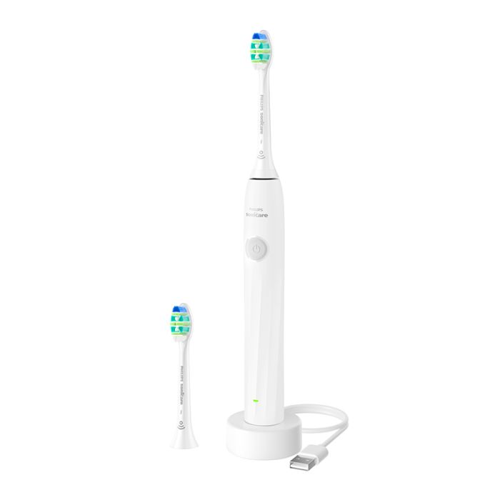 | Aanvullende kenmerken | PHILIPS SONICARE 2100 TANDENBORSTEL (HX4022/01) Reinigingsefficiëntie: Verwijdert tot 3 keer meer tandplak dan een handtandenborstel, op een zachte manier. Sonische Technologie: Maakt 31.000 bewegingen per minuut met een vloeistofactie die helpt om de vloeistof tussen de tanden en langs het tandvlees te laten stromen. Aangepaste Instellingen: Biedt 2 intensiteitsniveaus: een lage intensiteit voor gevoelige tanden en tandvlees en een gemiddelde intensiteit voor dagelijkse reiniging. Zachte Overgang: Voorzien van het EasyStart-programma dat de poetskracht geleidelijk verhoogt tijdens de eerste 14 keer gebruik. Poetshulp: Heeft een SmartTimer van 2 minuten die het einde van de sessie aangeeft en een QuadPacer die aanmoedigt om elke 30 seconden van zone te wisselen. Precisieborstelkop: Wordt geleverd met de InterCare-borstelkop waarvan de extra lange haren meer plak verwijderen op moeilijk bereikbare plaatsen. Batterijduur en Accu: Lithium-ion batterij met een autonomie tot 14 dagen en een lichtindicator die het batterijniveau aangeeft. Praktisch Ontwerp: Ergonomische, ultracompacte handgreep in witte kleur met een systeem voor eenvoudig te klikken borstelkoppen. Inhoud van de Doos: Bevat 1 oplaadbare handgreep 2100, 2 InterCare borstelkoppen en 1 oplader. |