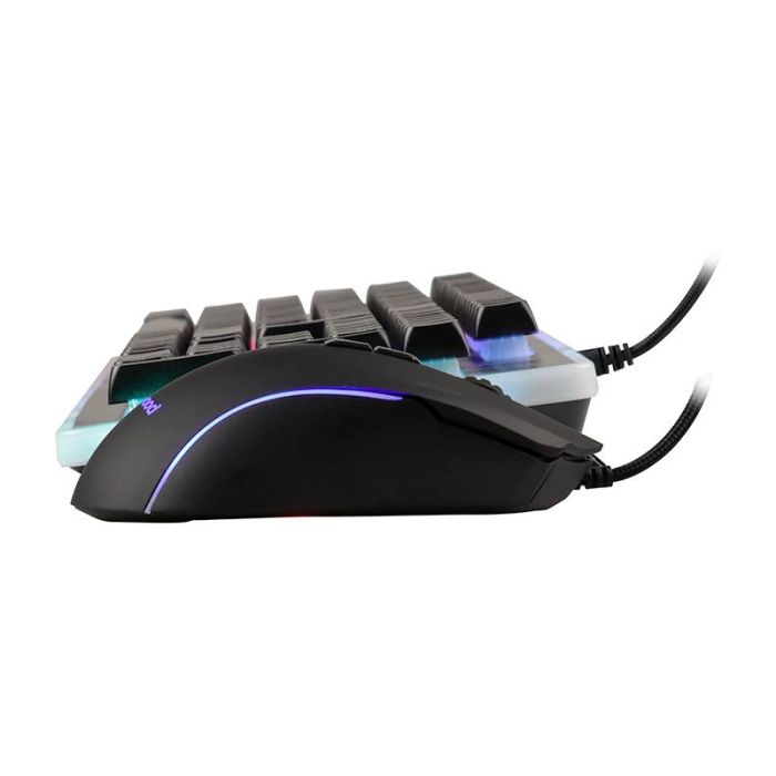 | Aanvullende kenmerken | Combo Gaming Edenwood – Hoogwaardige Toetsenbord & MuisDe Combo Gaming Edenwood biedt een complete set ontworpen voor reactievermogen, comfort en precisie, ideaal voor veeleisende gamers.► Gaming Toetsenbord 105 toetsen – responsieve & stille membraanDit bedrade toetsenbord met 100% membraantechnologie zorgt voor een vloeiende en stille typervaring, versterkt door 19-toetsen anti-ghosting voor snelle acties zonder fouten. Dankzij 12 multimedia sneltoetsen + 6 speciale toetsen heb je direct toegang tot je essentiële commando’s.De Rainbow achtergrondverlichting, Windows Lock functie, 1,8 m kabel en gewicht van 505 g maken het toetsenbord stabiel, praktisch en klaar voor gebruik dankzij Plug & Play.► Gaming Muis 7200 DPI – maximale precisieDe bedrade muis biedt een instelbare gevoeligheid tot 7200 DPI, perfect voor alle soorten games. Met een verversingssnelheid van 125 Hz, 7 knoppen en een symmetrische vorm garandeert hij nauwkeurige en comfortabele controle.Met RGB achtergrondverlichting, een gewicht van 123 g, 1,8 m kabel en compatibiliteit met Windows & Mac past hij in elke gaming setup. Plug & Play inbegrepen. |