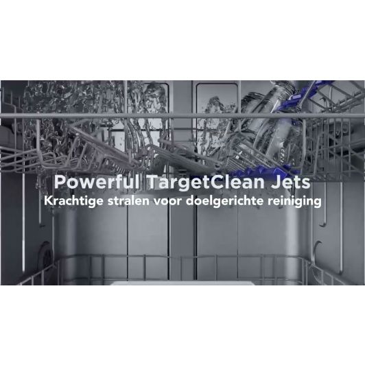 Deze vrijstaande vaatwasser is uitgerust met indicatielampjes op het voorpaneel om u te informeren wanneer zout of glansspoelmiddel moet worden bijgevuld. De moduleerbare binneninrichting vergemakkelijkt het inladen van grotere schalen en pannen, wat elke keer weer voor een optimale reiniging zorgt.