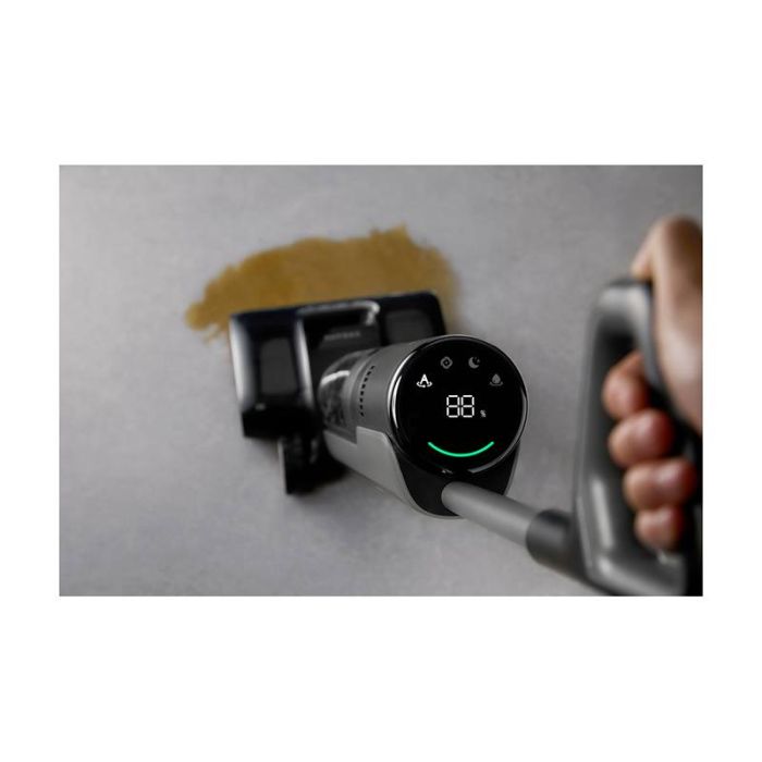 | Aanvullende kenmerken | De H12 Pro FlexLite maakt schoonmaken eenvoudiger dankzij zijn tweezijdige borstel en het platte ontwerp van 180°, waarmee je gemakkelijk randen, hoeken en onder meubels bereikt. Of hij nu plat ligt of rechtop staat, hij levert tot 18 kPa zuigkracht terwijl hij de vloeren met schoon water dweilt. Een volledige lading zorgt voor tot wel 50 minuten ononderbroken schoonmaak. Het onderhoud wordt kinderspel: de 100% klittenvrije borstel vereist geen handmatig ontwarren en wordt automatisch gereinigd op 90 °C met een simpele druk op de knop, zodat hij schoon en klaar is voor je volgende klus. Dankzij het platte ontwerp van 180°* glijdt de H12 Pro FlexLite gemakkelijk in ruimtes tot 14 cm*, terwijl hij een krachtige zuigkracht van 18 kPa* behoudt zonder compromissen. De tweezijdige borstel reinigt effectief langs muren en deurkozijnen, waardoor een tweede schoonmaakbeurt overbodig wordt. De H12 Pro FlexLite is uitgerust met een veerkrachtige TangleCut™ schraper, ontworpen met stevige en verlengde tanden die tegen de borstel blijven om haren te vangen en door te snijden, waardoor de borstel 100% klittenvrij* blijft en je het gedoe van handmatig ontwarren bespaart. Na een warme reiniging op 90 °C* wordt de borstel gedroogd met warme lucht op 90 °C* om overtollig water te verwijderen. Het automatische reinigingsproces bootst handmatig wassen na, waarbij de borstel met dubbele rotatie van richting verandert om de haren grondig te reinigen, wat geurtjes en schimmelvorming voorkomt. De H12 Pro FlexLite biedt 50 minuten* continue autonomie met één enkele lading, waardoor je moeiteloos natte en droge vuiligheid op oppervlakken tot 300 m²* kunt aanpakken. Hij past zich aan verschillende harde vloeren aan voor een grondige reiniging door het hele huis. |