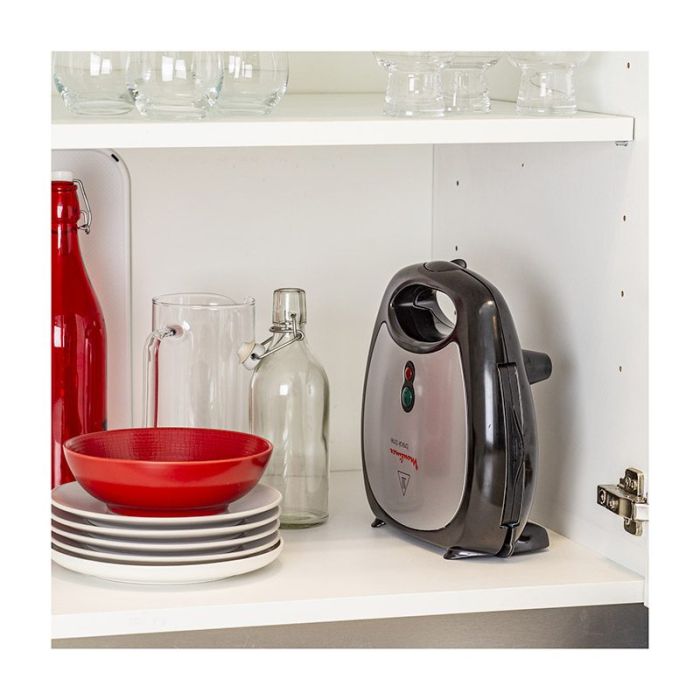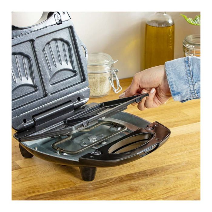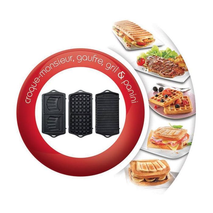 | Aanvullende kenmerken | Multifunctioneel: wafels, croque-monsieur en panini: 3 sets verwisselbare platen om snel en gemakkelijk wafels, croque-monsieur of panini’s te bereiden, op elk moment van de dag. Maak wafels, croque-monsieur of gegrilde gerechten die elke fijnproever zullen bekoren! Het reinigen is eenvoudig dankzij de antikleefplaten die vaatwasmachinebestendig zijn. De zilverkleurige afwerking past ongetwijfeld perfect in uw keuken.Makkelijk op te bergen: Handig, hij kan gemakkelijk verticaal worden opgeborgen en de snoeropbergruimte bespaart plaats in uw kast.Eenvoudig in gebruik: De aan/uit- en voorverwarmingsindicatoren maken het gebruik eenvoudig.Gemakkelijk schoon te maken: De antikleefplaten zijn afneembaar en vaatwasmachinebestendig, wat het schoonmaken vergemakkelijkt.Praktisch: Afneembare antikleefplaten voor variatie in uw bereidingen. |