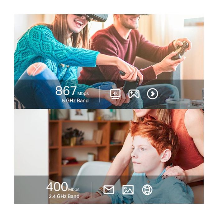 | Aanvullende kenmerken | WiFi AC1300 dual-bandOntvang WiFi-signalen op twee afzonderlijke banden voor al uw online behoeften.Kies de 2,4 GHz-band voor surfen, e-mail en sociale netwerken, of schakel over naar de 5 GHz-band voor gamen en streaming. |